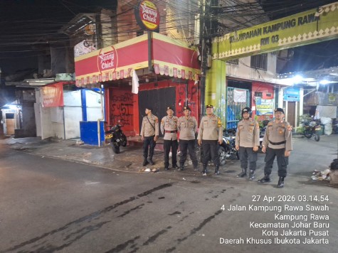 Jakarta Pusat – Guna menjaga stabilitas keamanan wilayah, jajaran Polsek Johar Baru menggelar patroli cipta kondisi dengan menyisir sejumlah titik rawan pada Senin (27/4/2026) dini hari. Kegiatan dimulai sekitar pukul 02.25 WIB dan melibatkan 10 personel kepolisian.
