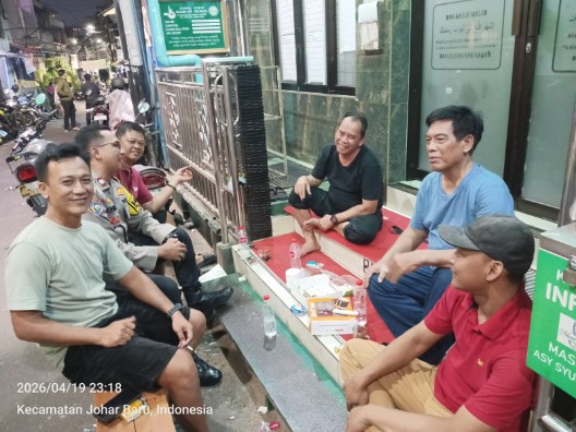 Jakarta Pusat – Dalam rangka menjaga stabilitas keamanan dan ketertiban masyarakat (kamtibmas), Bhabinkamtibmas Kelurahan Kampung Rawa melaksanakan kegiatan cooling system, patroli wilayah, serta door to door system (DDS) sambang lingkungan di RT 13 RW 01, Kelurahan Kampung Rawa, Kecamatan Johar Baru, Jakarta Pusat, pada Minggu malam (19/4/2026) pukul 23.18 WIB.