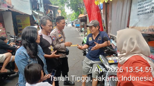 Kegiatan tersebut dilaksanakan pada Selasa, 7 April 2026 pukul 13.30 WIB, bertempat di Jalan Tanah IV RW 07, Kelurahan Tanah Tinggi, Kecamatan Johar Baru, Jakarta Pusat. Sambang dialogis ini dilakukan oleh Aipda Tangguh TP selaku Bhabinkamtibmas Kelurahan Tanah Tinggi.