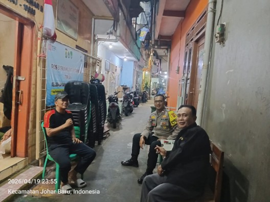 Jakarta Pusat – Guna menjaga situasi keamanan dan ketertiban masyarakat (kamtibmas) tetap kondusif, jajaran Polsek Johar Baru terus mengintensifkan patroli wilayah dan sambang siskamling, termasuk di RW 06 Kelurahan Kampung Rawa, Kecamatan Johar Baru, Jakarta Pusat, pada Minggu (19/4/2026) pukul 23.55 WIB.