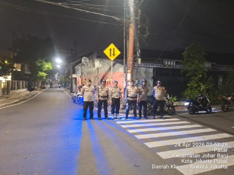 Jakarta Pusat – Upaya menjaga stabilitas keamanan terus dilakukan Polsek Johar Baru melalui patroli cipta kondisi pada Jumat (24/4/2026) dini hari. Kegiatan yang dimulai pukul 02.45 WIB ini menyasar sejumlah titik rawan di wilayah hukum Polsek Johar Baru guna mengantisipasi gangguan kamtibmas.