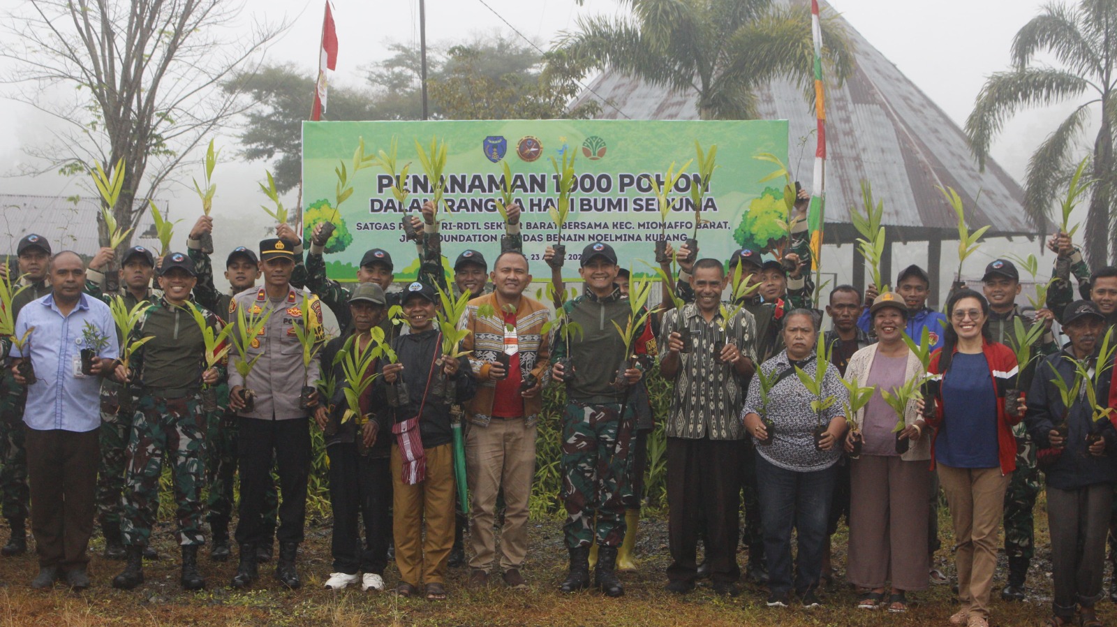 Eban – Dalam upaya melestarikan lingkungan bertepatan dengan peringatan Hari Bumi Sedunia, Satgas Pamtas RI-RDTL Sektor Barat Yonarhanud 2 Kostrad melaksanakan kegiatan penanaman 1000 bibit pohon yang diikuti oleh seluruh masyarakat yang berada di Kecamatan Miomaffo Barat, Kab. TTU. Kamis (23/04)