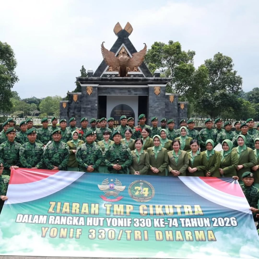 Bandung – Dalam rangka memperingati Hari Ulang Tahun (HUT) ke-74, Batalyon Infanteri 330/Tri Dharma melaksanakan ziarah rombongan di Taman Makam Pahlawan (TMP) Cikutra, Bandung, Jumat (17/04/2026).