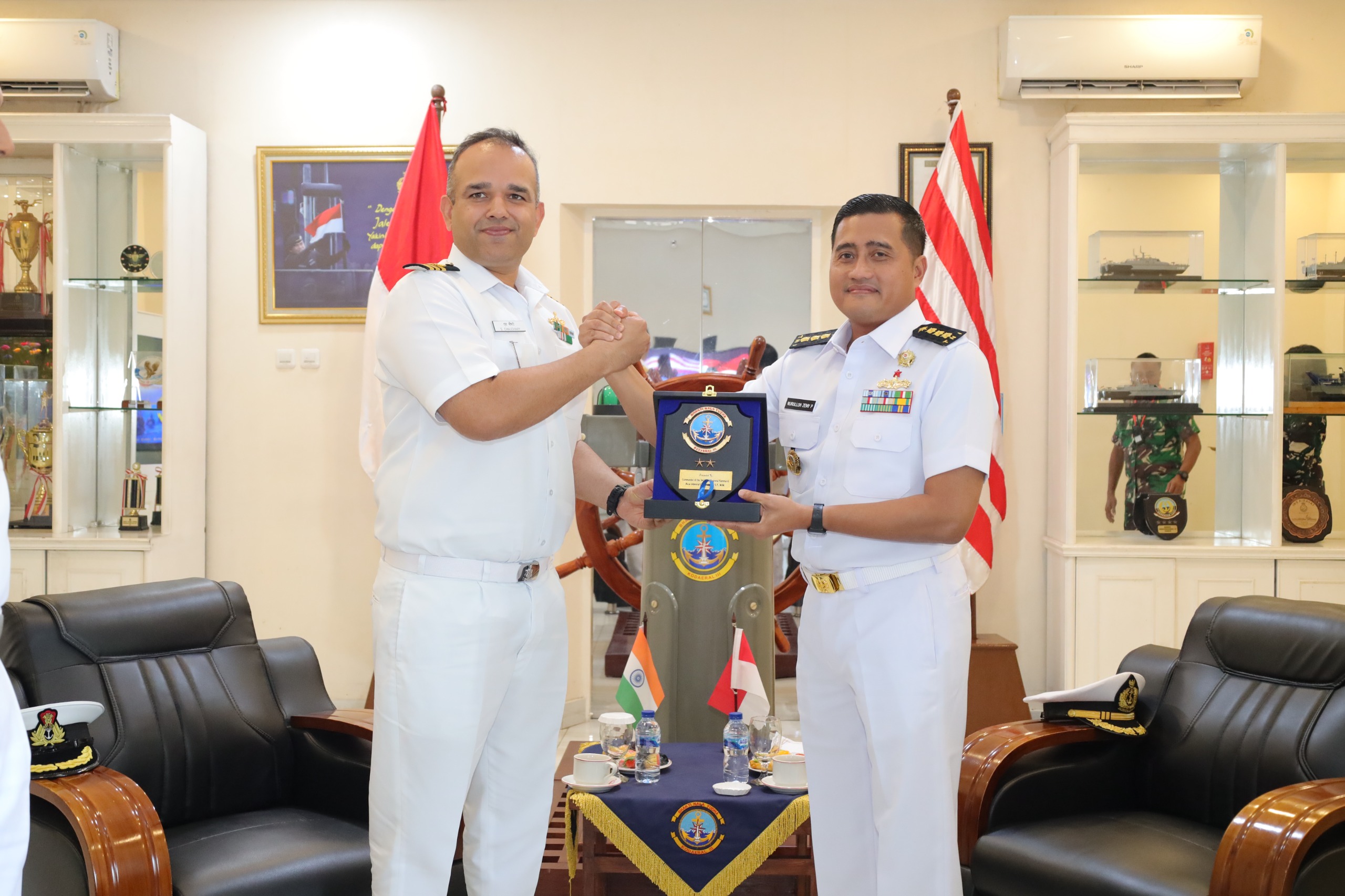 Komandan Kodaeral III, Laksamana Muda TNI Uki Prasetia, S.T., M.M. yang diwakili oleh Asisten Perencanaan Dankodaeral, Kolonel Laut (P) Nurulloh Zemi Prasetio, M.S.C. didampingi Kasatker Kodaeral menerima CC yang dipimpin oleh Atase Pertahanan India, Captain (N) Shiv Kumar yang didampingi Komandan INS Sunayna, Commander Siddarth Chaudary di lobby utama Makodaeral III, Selasa (21 April 2026).