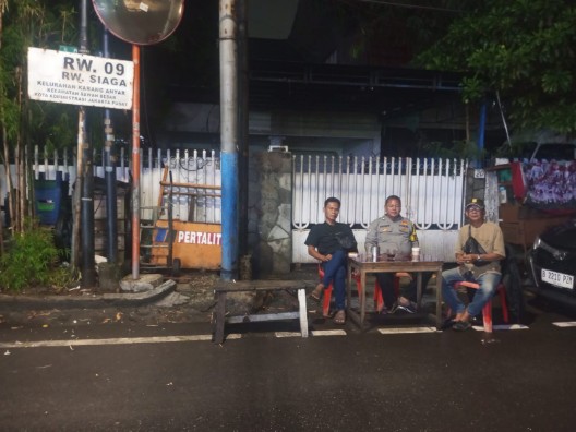Jakarta Pusat – Dalam rangka menjaga situasi kamtibmas tetap aman dan kondusif, Bhabinkamtibmas Kelurahan Karang Anyar Aiptu Syaifudin melaksanakan kegiatan sambang dan koordinasi bersama awak kamling RW 009 serta tokoh masyarakat di Jalan Dwi Warna Raya, Sawah Besar, Jakarta Pusat, Rabu (15/4/2026) malam. Kegiatan ini dilakukan sebagai langkah preventif Polri dengan hadir langsung di tengah masyarakat guna membangun komunikasi, menyerap informasi, serta memastikan kesiapsiagaan warga dalam menghadapi potensi gangguan keamanan, khususnya menjelang malam hari seperti tawuran remaja dan tindak kriminalitas lainnya.