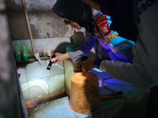 Sejak pagi, petugas bersama kader Jumantik dan ibu-ibu PKK menyisir rumah warga untuk memeriksa keberadaan jentik nyamuk di berbagai titik genangan air, mulai dari bak mandi, dispenser, hingga pot bunga. Pemeriksaan juga dilakukan di lingkungan sekolah dasar guna memastikan area publik terbebas dari potensi berkembangnya nyamuk penyebab penyakit.