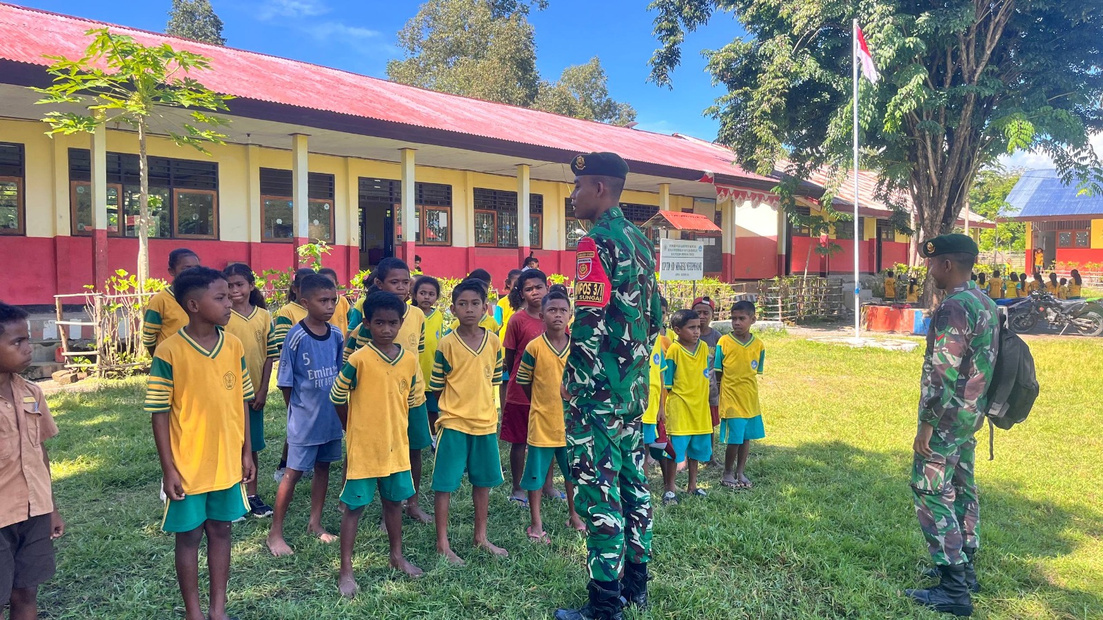 ‎Netemnanu – Dalam rangka mempererat hubungan dengan anak-anak di daerah perbatasan, Satgas Pamtas RI–RDTL Sektor Barat Yonarhanud 2 Kostrad Pos Oepoli Sungai melaksanakan kegiatan berbagi ilmu kepemimpinan dengan materi PBB (Peraturan Baris Berbaris) kepada SDN Netemnanu, Kec. Amfoang Timur, Kab. Kupang. Selasa (21/04)